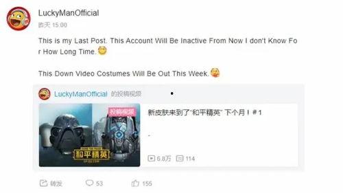 最近和平精英圈子里可是炸开了锅,大家都被一个神秘人物Luckyman的爆料给吸引了。这位Luckyman,据说可是和平精英界的“大V”,他的每一次发言都能掀起一阵热议。这不,他最近又爆出了什么大瓜,咱们一起来聊聊吧!