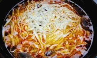 4. 煮配料:将煮好的面条捞出,放入碗中,加入适量的火锅底料、盐、鸡精等调料,搅拌均匀。